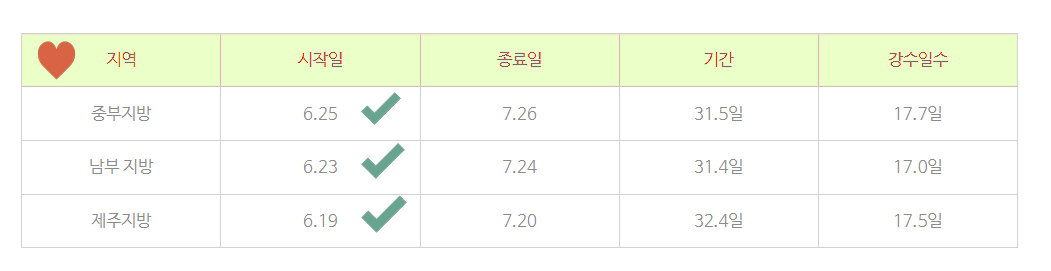 2021년 장마시작